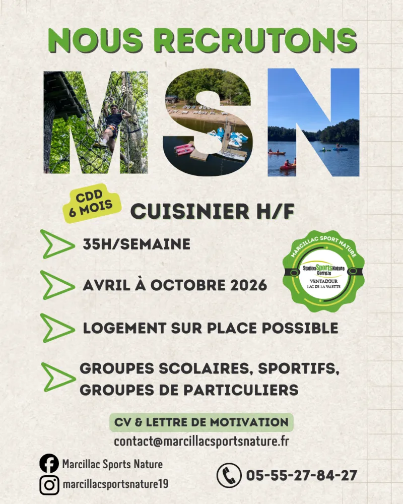 Nous recherchons un(e) cuisinier(ère) polyvalent(e) et autonome capable d’assurer la gestion complète de la cuisine pour des groupes.